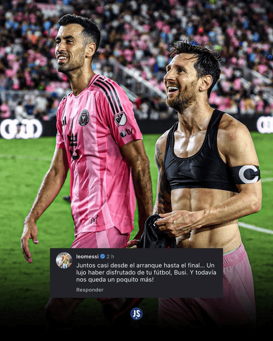 梅西在布斯克茨的社媒下这样写道:“我们几乎从一开始就并肩作战,直到如今接近终点。布斯克茨,能欣赏到你的球技是一件幸事,而且我们接下来还有一小段征程要走。”